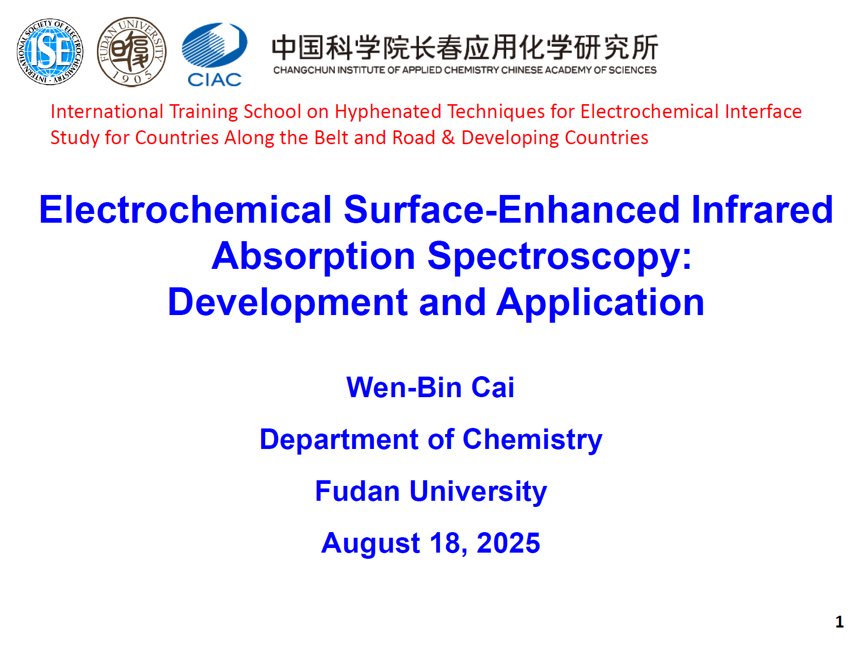 Prof. Wen-Bin Cai delivered a lecture on electrochemical surface-enhanced infrared spectroscopy at International Training School on Hyphenated Technologies for Electrochemical Interface Study for Countries along the Belt and Road & Developing Countries on August 18, 2025.